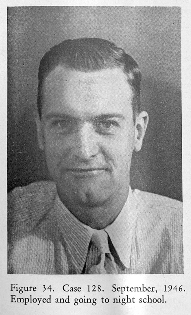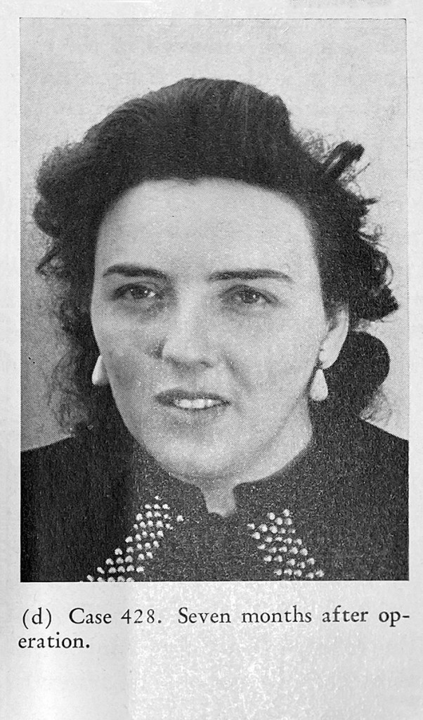 Freeman took Before and After photographs of all his patients. He annotated these with his observations on the change in them following lobotomy.