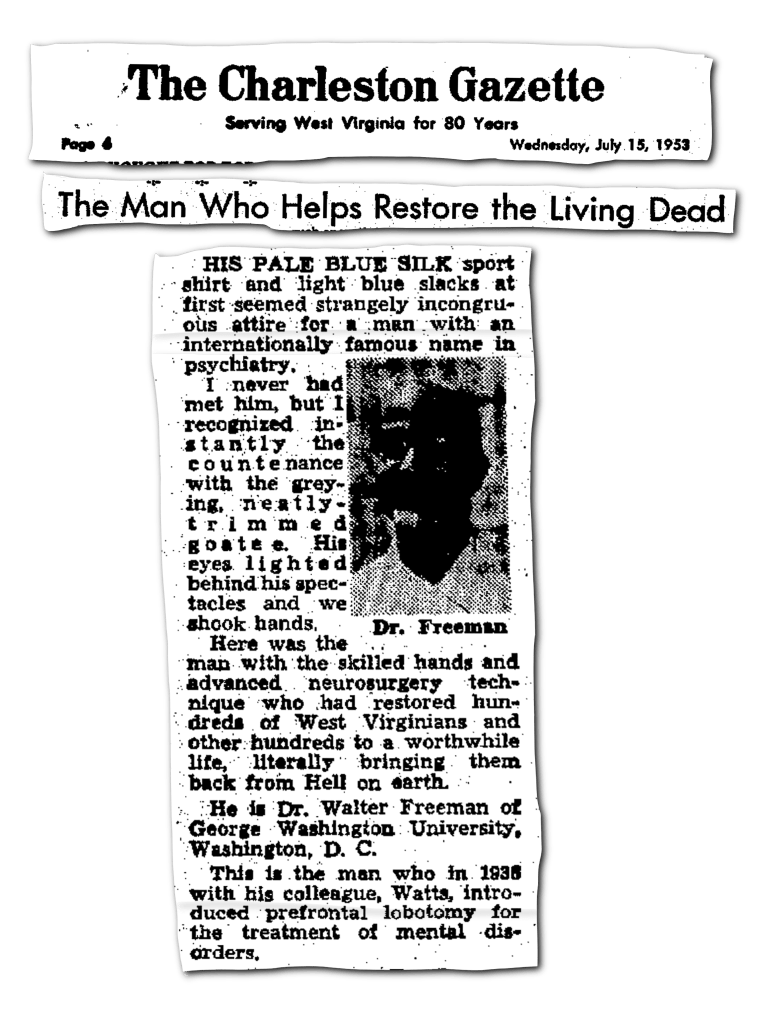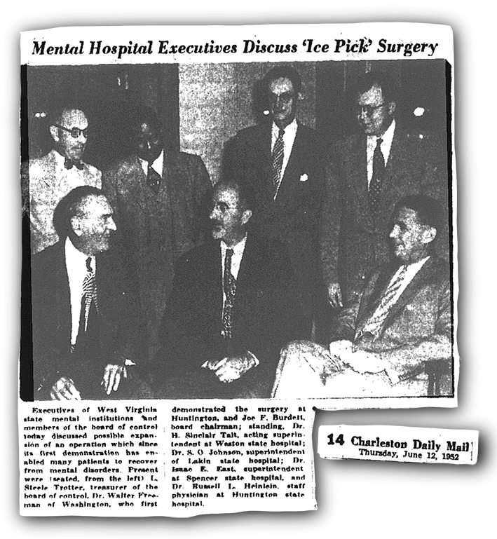 In 1952, Freeman embarked on a state-sponsored lobotomy campaign in West Virginia, which became known as “Operation Ice Pick.” He sought to empty West Virginia’s five public psychiatric hospitals, including Huntington and Lakin State Hospital, by lobotomizing their patients on a mass-scale.