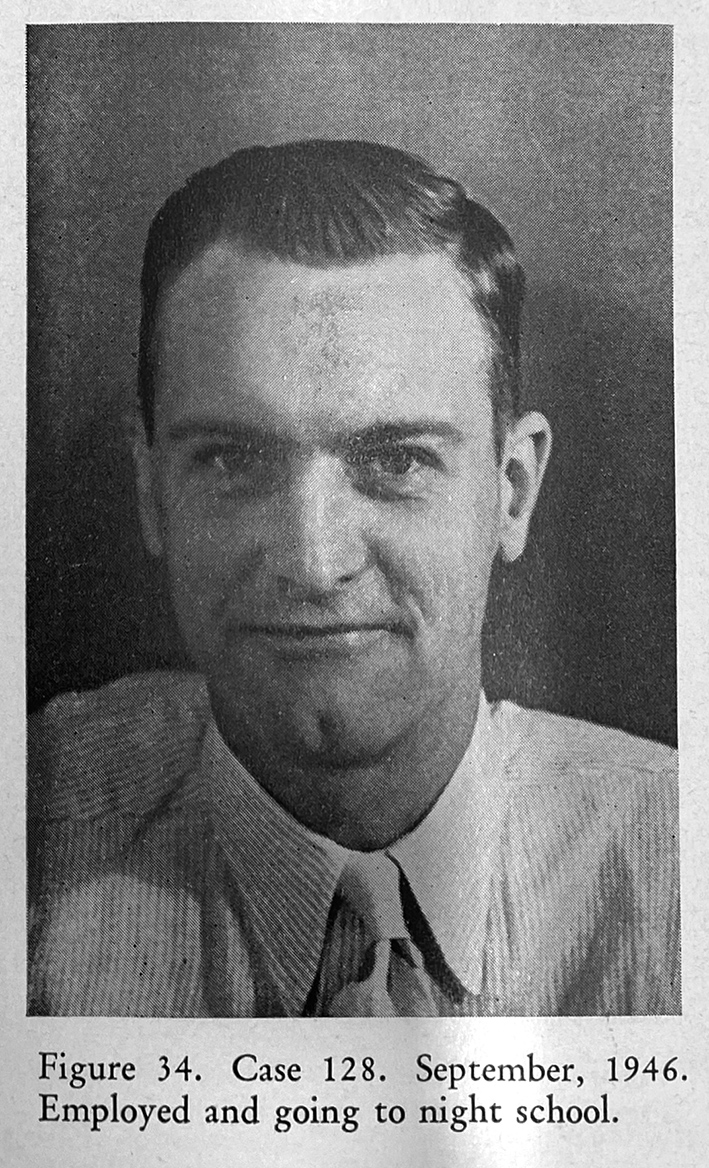 Freeman took Before and After photographs of all his patients. He annotated these with his observations on the change in them following lobotomy.
