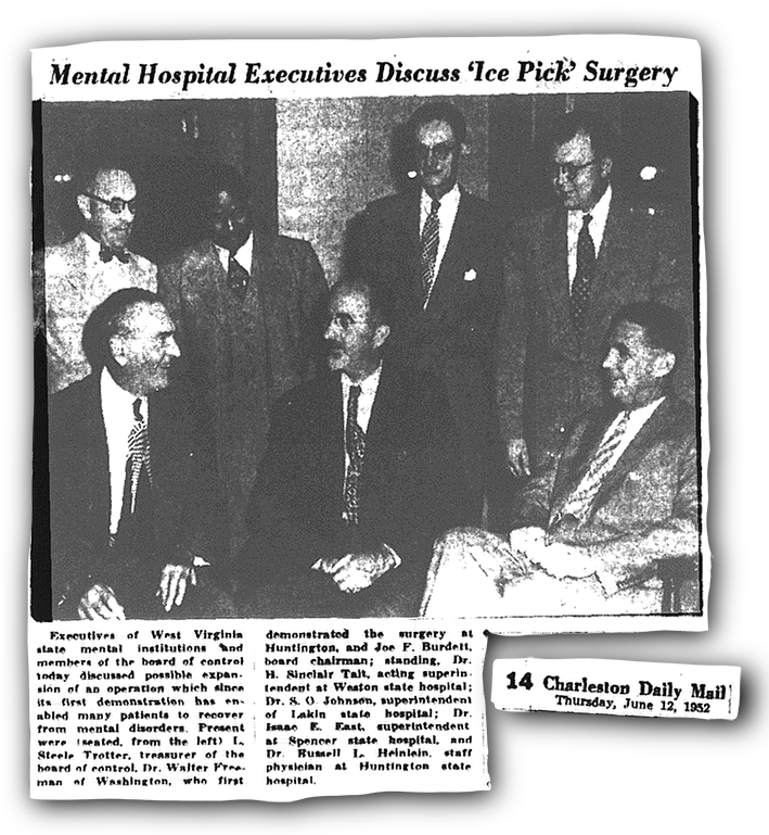 In 1952, Freeman embarked on a state-sponsored lobotomy campaign in West Virginia, which became known as “Operation Ice Pick.” He sought to empty West Virginia’s five public psychiatric hospitals, including Huntington and Lakin State Hospital, by lobotomizing their patients on a mass-scale.